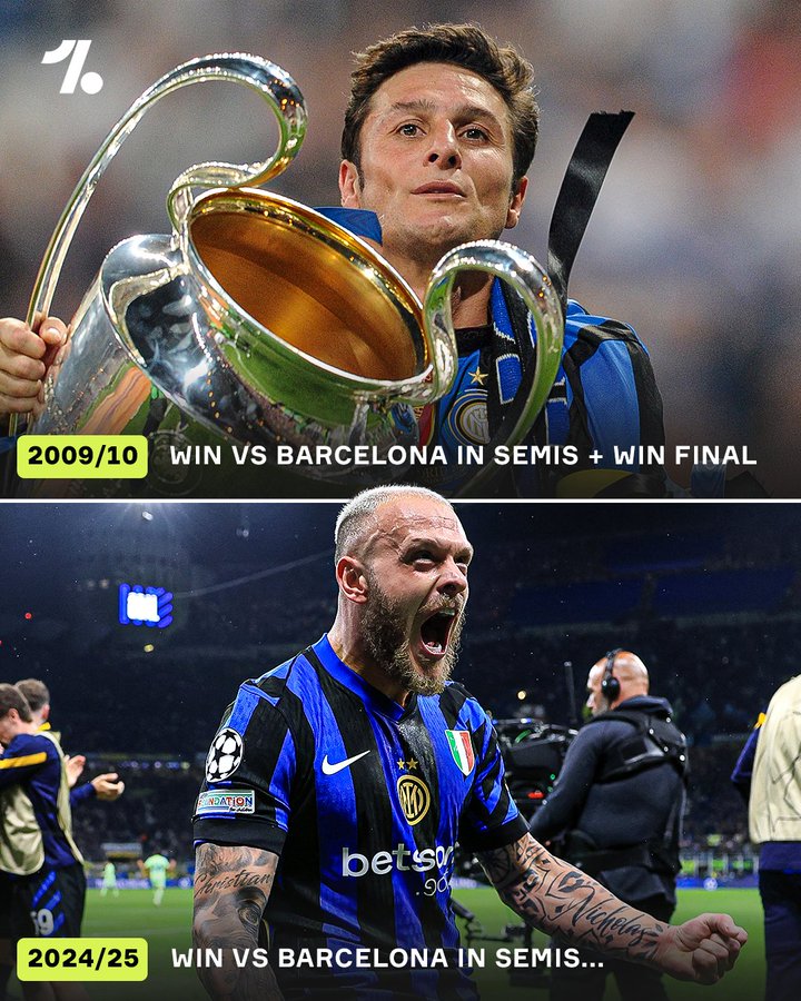 一项有利于国米的统计在于--09/10赛季的他们,就是在半决赛淘汰了巴萨之后更终决赛击败拜仁完成了捧杯。而本赛季继1/4决赛淘汰拜仁之后,又在半决赛淘汰了巴萨的蓝黑军团,看上去有望复制2010年的神迹。