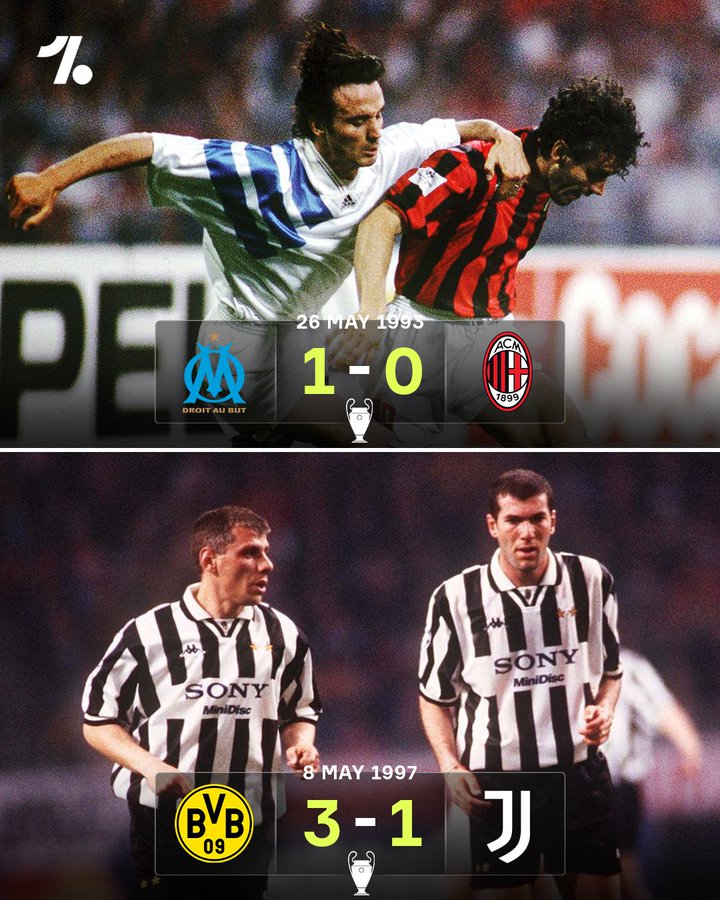 可一个相对不走运的统计在于,在1993年和1997年的欧冠决赛中,当时的米兰和尤文均闯进了决赛而有望争夺冠军。但在慕尼黑进行的这两场比赛,意甲球队却都不是更终的赢家--米兰不敌马赛屈居亚军,多特击败尤文捧起奖杯。