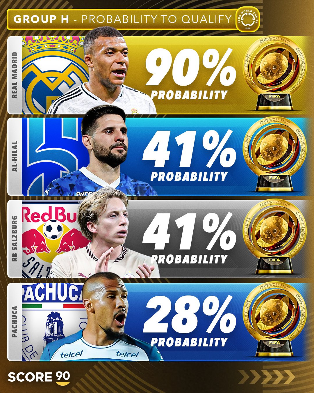 至少在Opta的统计中,皇马的优势还是巨大的--皇马胜,68.9%;新月胜,13.5%;双方平局,17.6%。