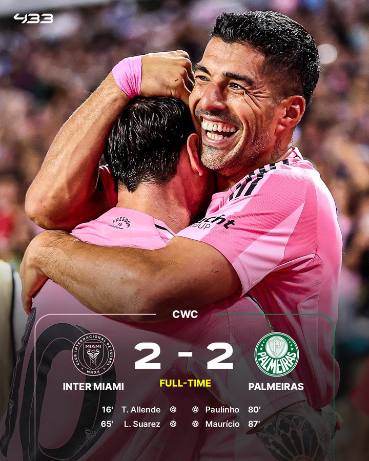 在迈阿密国际对阵帕尔梅拉斯的比赛中,迈阿密凭借苏亚雷斯的传射建功,在第65分钟就取得了两球的领先。然而,当所有人以为迈阿密会成为A组第一之时,帕尔梅拉斯在7分钟之内的两粒进球,更终让比分变成了2-2。