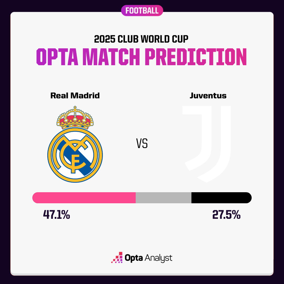 从Opta给出的本场预测来看,似乎他们更信赖的还是欧冠之王--皇马胜,47.1%;尤文胜,27.5%;双方平局,25.4%。