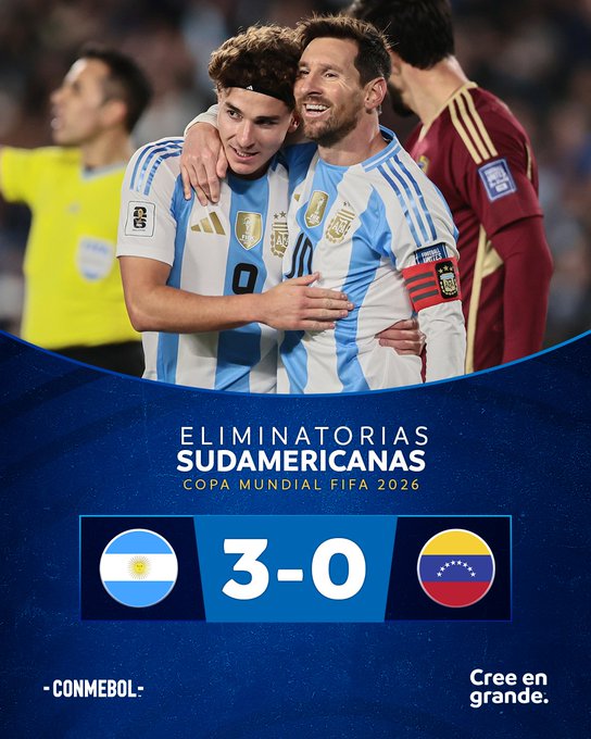 依靠梅西的梅开二度和劳塔罗的进球,阿根廷主场3球完胜委内瑞拉,拿到了第17轮比赛的胜利。