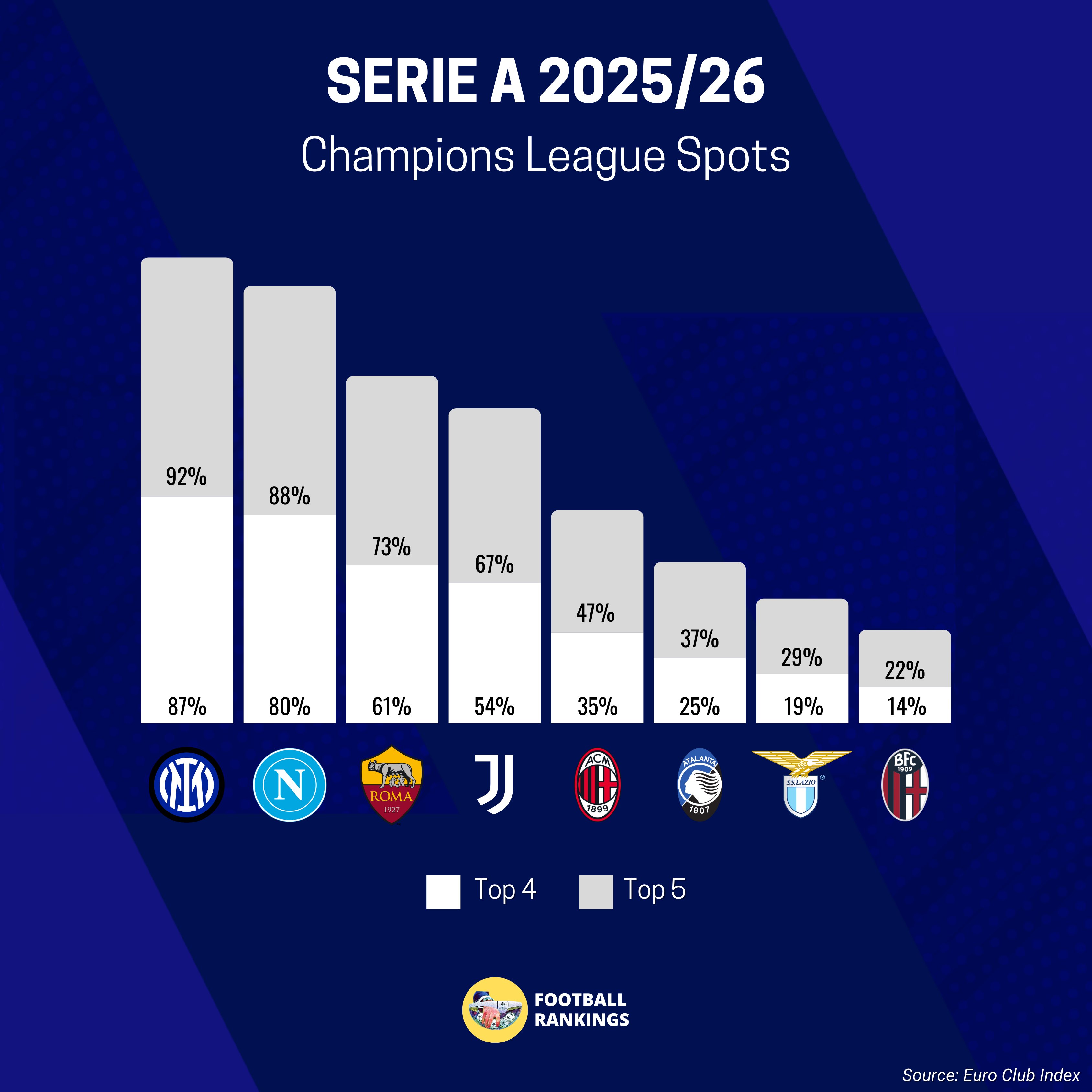而在近日,足球媒体Football Rankings就发布了对于五大联赛本赛季有望晋级26/27赛季欧冠联赛的球队预测。在这其中所有人不难发现的一个事实就是,似乎本赛季的五大联赛,并不会有太多的黑马球队出现!