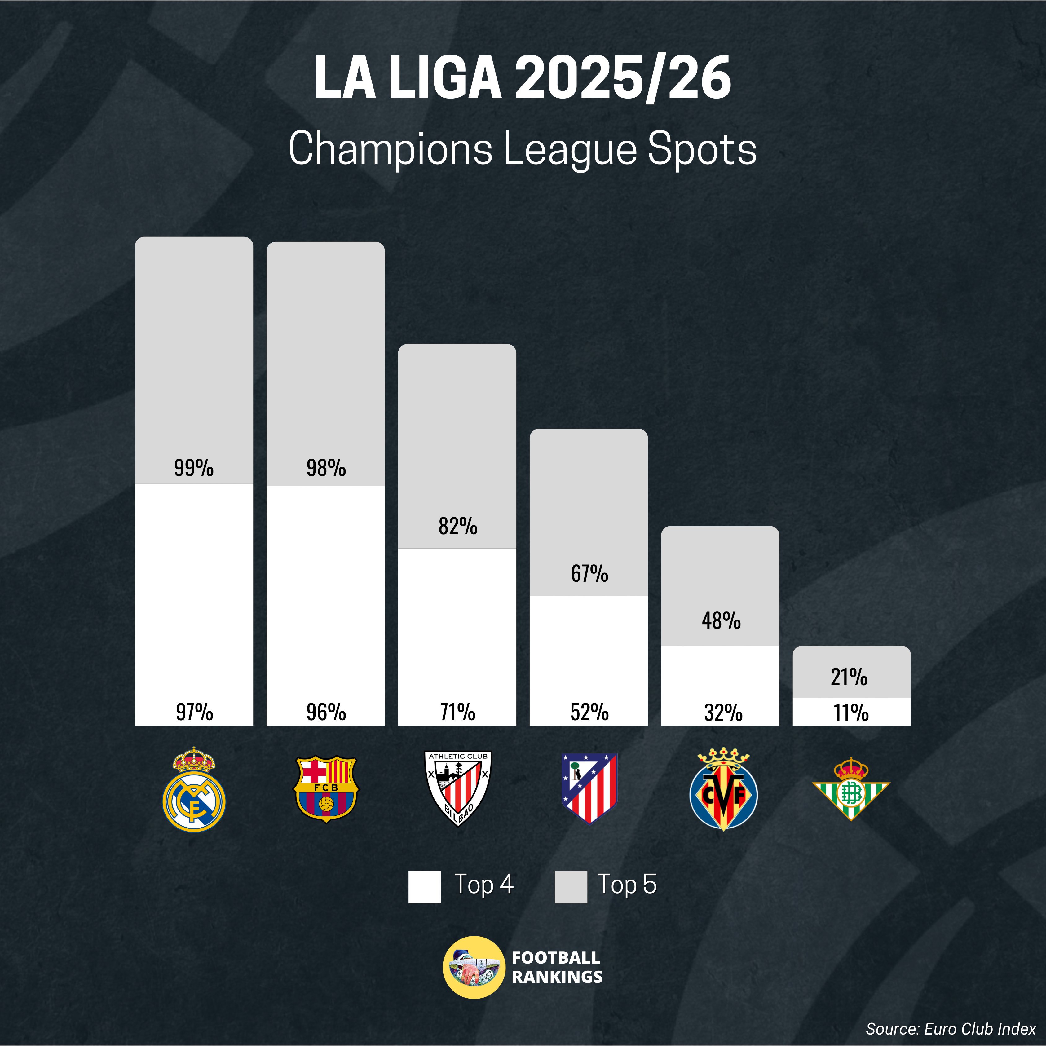 比利亚雷亚尔,前四概率32%,前五概率48%
