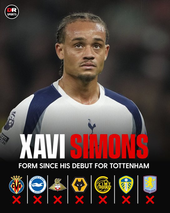 6500万欧元,热刺今夏从莱比锡带来了22岁的荷兰前锋哈维-西蒙斯。结果没成想,8场比赛仅有1助攻的成绩,几乎也让热刺的这笔投资打了水漂。
