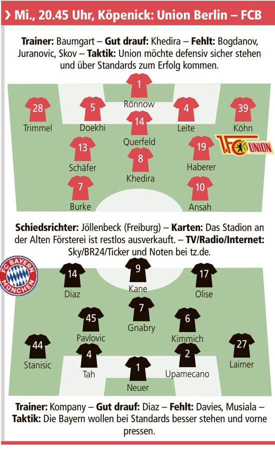 所以,从赛前德媒给出的第一发预测来看,万不可再出现德国杯提早出局的拜仁,也的确延续了球队从第一轮至今就以全主力班底迎战的情形。