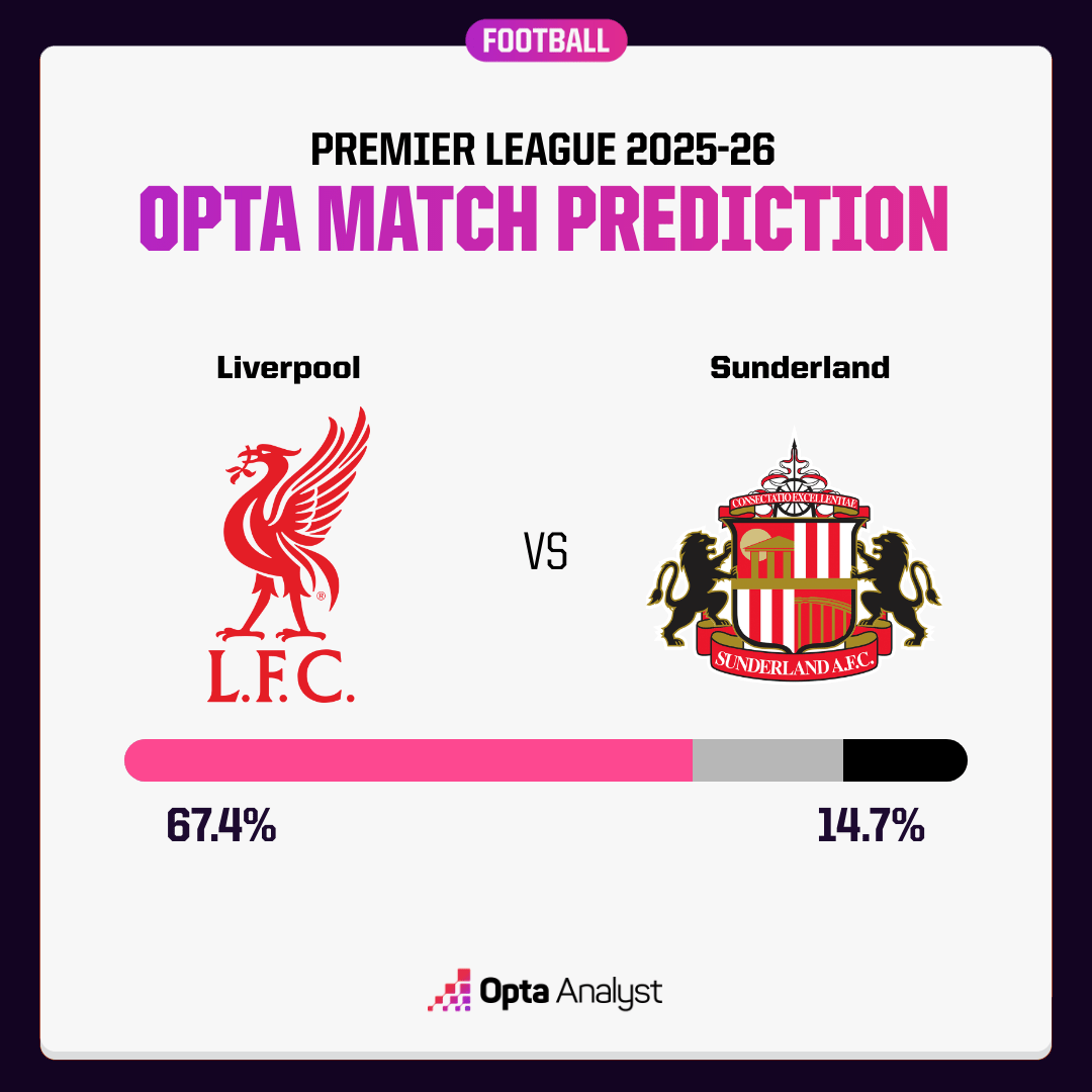 所以,在Opta的预测中,即便利物浦赛季状态不佳而桑德兰表现优异,其实更多的支持还是给了主队--利物浦胜,67.4%;桑德兰胜,14.7;双方平局,17.9%。