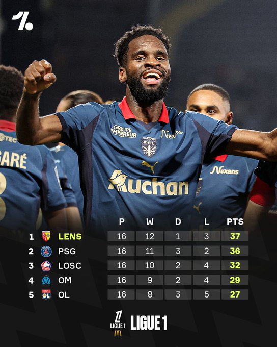 所以,即便朗斯的失利场次比巴黎还多出一场,但更多的胜场数还是让朗斯目前力压巴黎稳居联赛第一。