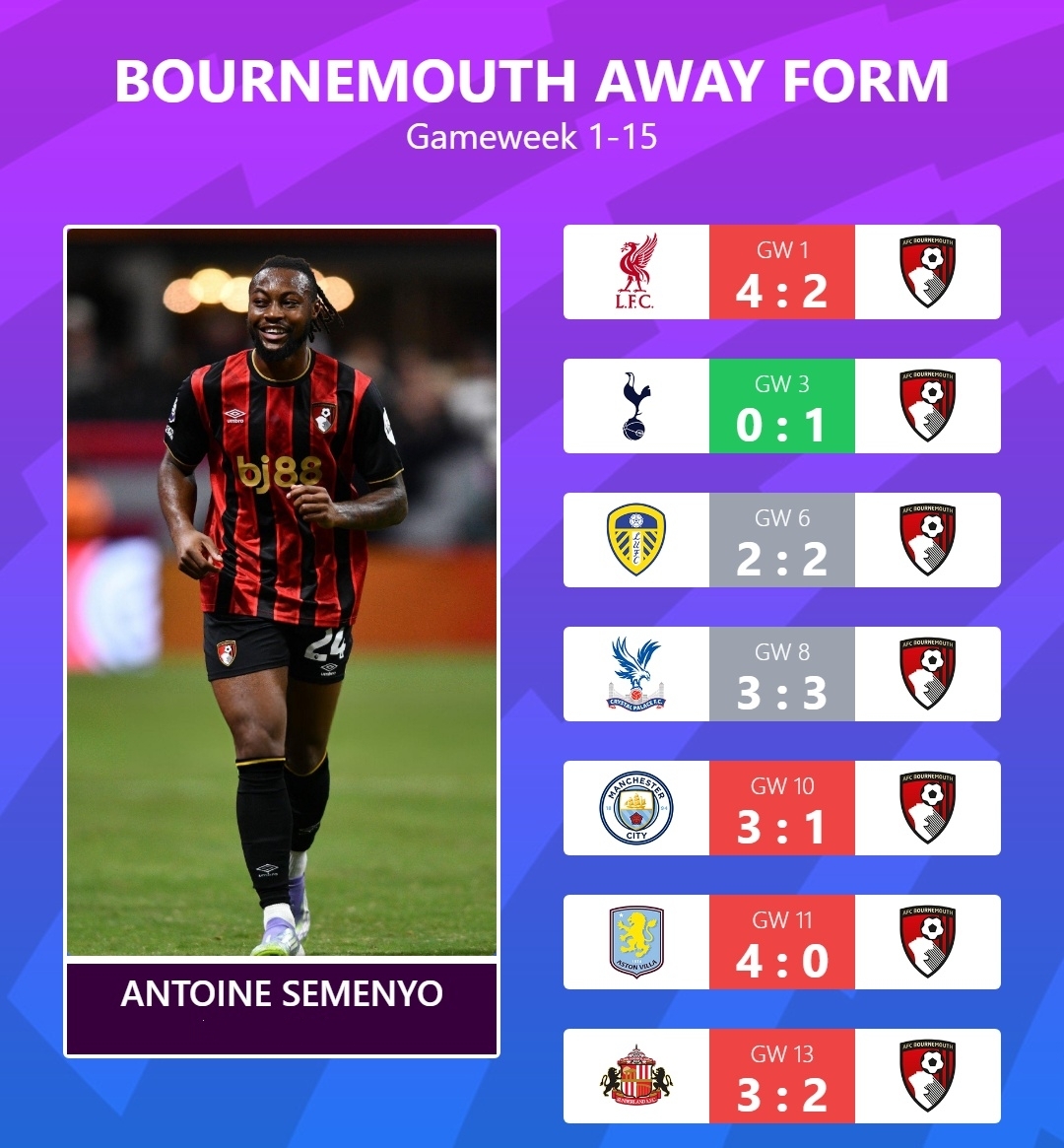而从伯恩茅斯本赛季客场1胜2平4负且连续6个客场不胜的统计来看,这无疑算是对于红魔众将的利好。毕竟,困扰伯恩茅斯成绩止步不前的重要原因,就是球队近来在客场甚至于整体联赛层面的进球荒问题。