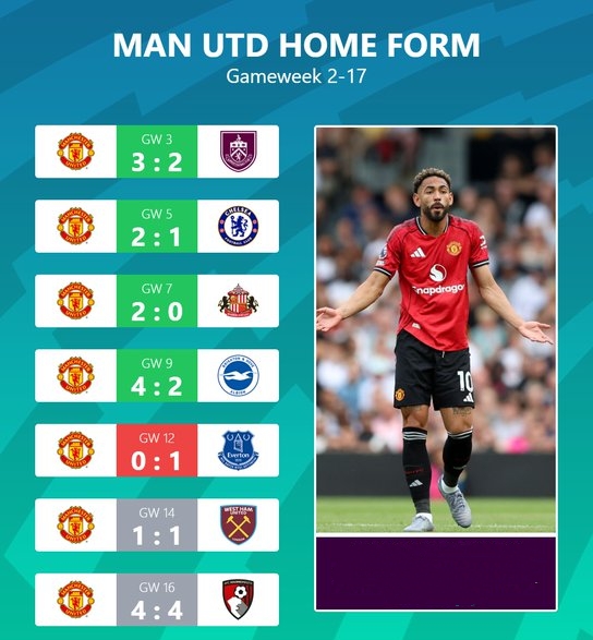 而回顾曼联本赛季联赛主场4胜2平2负的成绩单,其实不难发现红魔受制于防线不稳的情形,已渐渐失去了在主场的稳定性、近3个主场2平1负没有胜绩的同时,也让总失球数达到了6粒、场均2球;