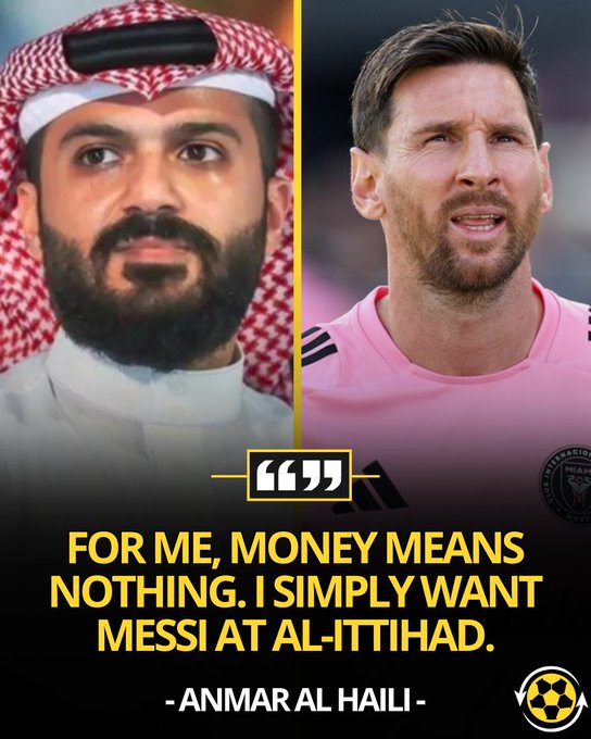 对我而言,金钱没有任何意义!我更单纯的想法,就是让梅西来吉达联合踢球!