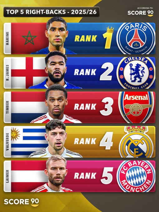 日前,足球媒体SCORE 90评比了本赛季至今在门将,中卫、边卫以及防守型后腰这5个位置的赛季更佳球员的前5名。而从媒体给出的结果来看,阿森纳和巴黎无疑可堪称本赛季防守更好的球队。