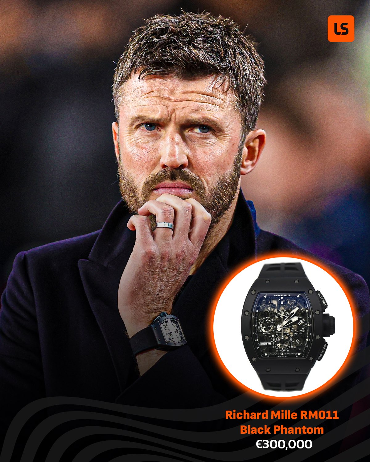 而曼联主帅卡里克的腕表价值则是达到了30万欧元,只因这是一款来自于RICHARD MILLE的RM011系列;