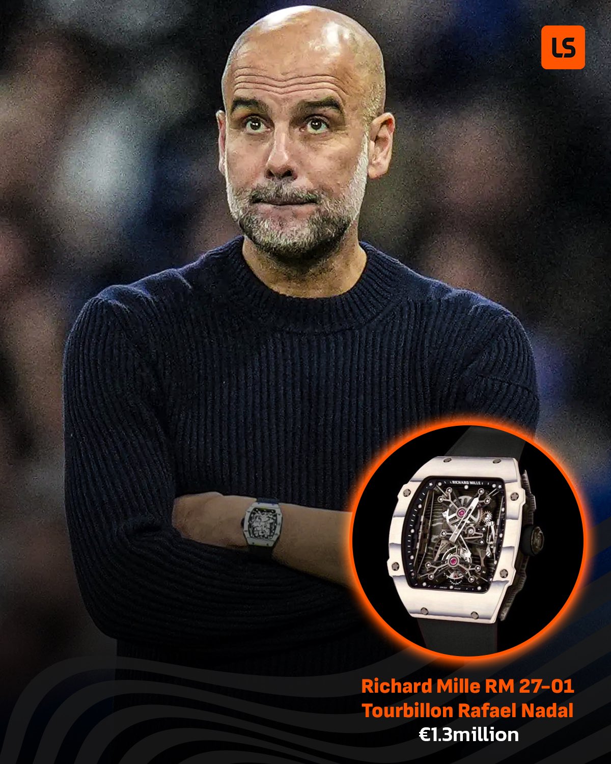 那么,更贵的腕表佩戴在谁的身上呢?瓜迪奥拉,售价高达130万欧元的RICHARD MILLE的RM 27-01系列!