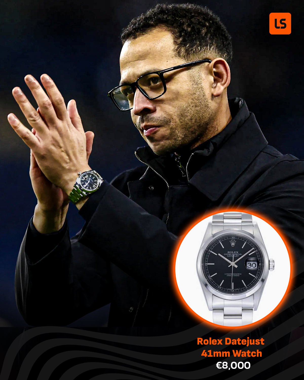 据悉,阿森纳主帅阿尔特塔所佩戴的是劳力士的一款售价达到了1万欧元的手表;