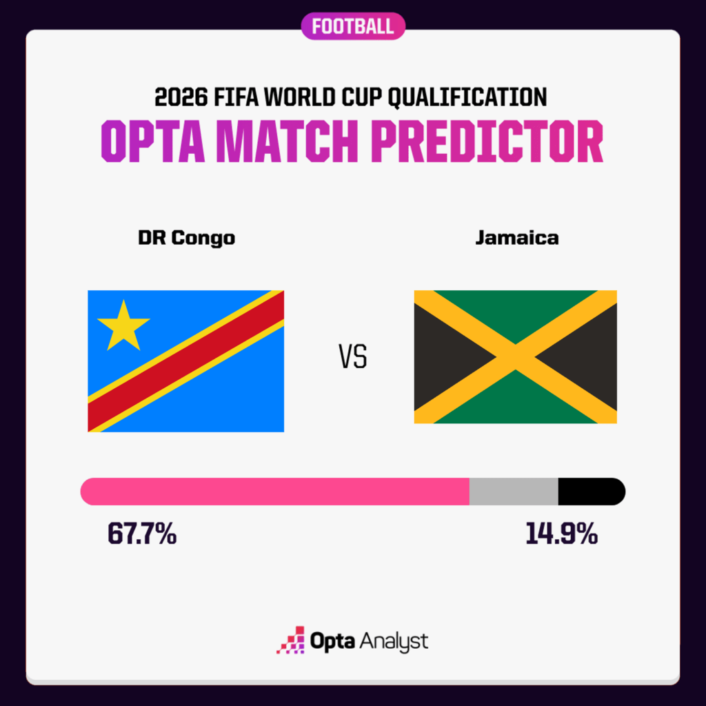 刚果vs牙买加:67.7%-17.4%-14.9%