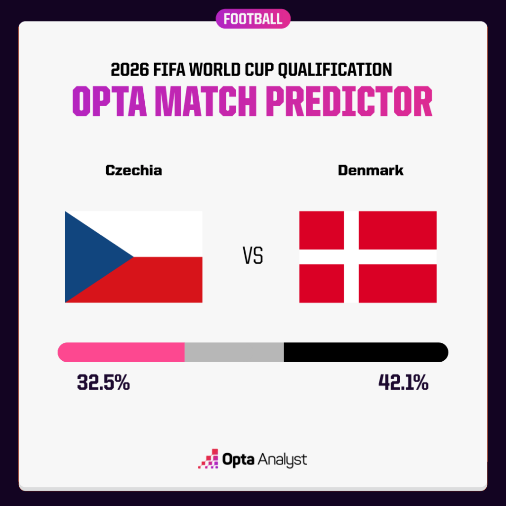 捷克vs丹麦:32.5%-25.4%-42.1%
