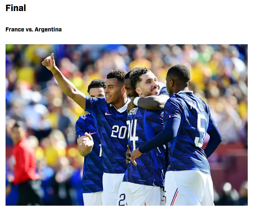 更终冠军,将由连续三届闯进决赛的法国队捧起球队队史上的第三座冠军!