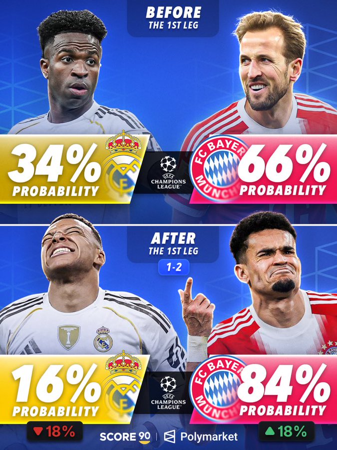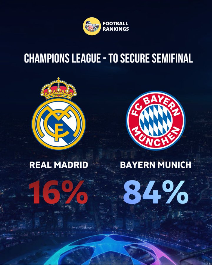 晋级概率预测--皇马,16%;拜仁,84%