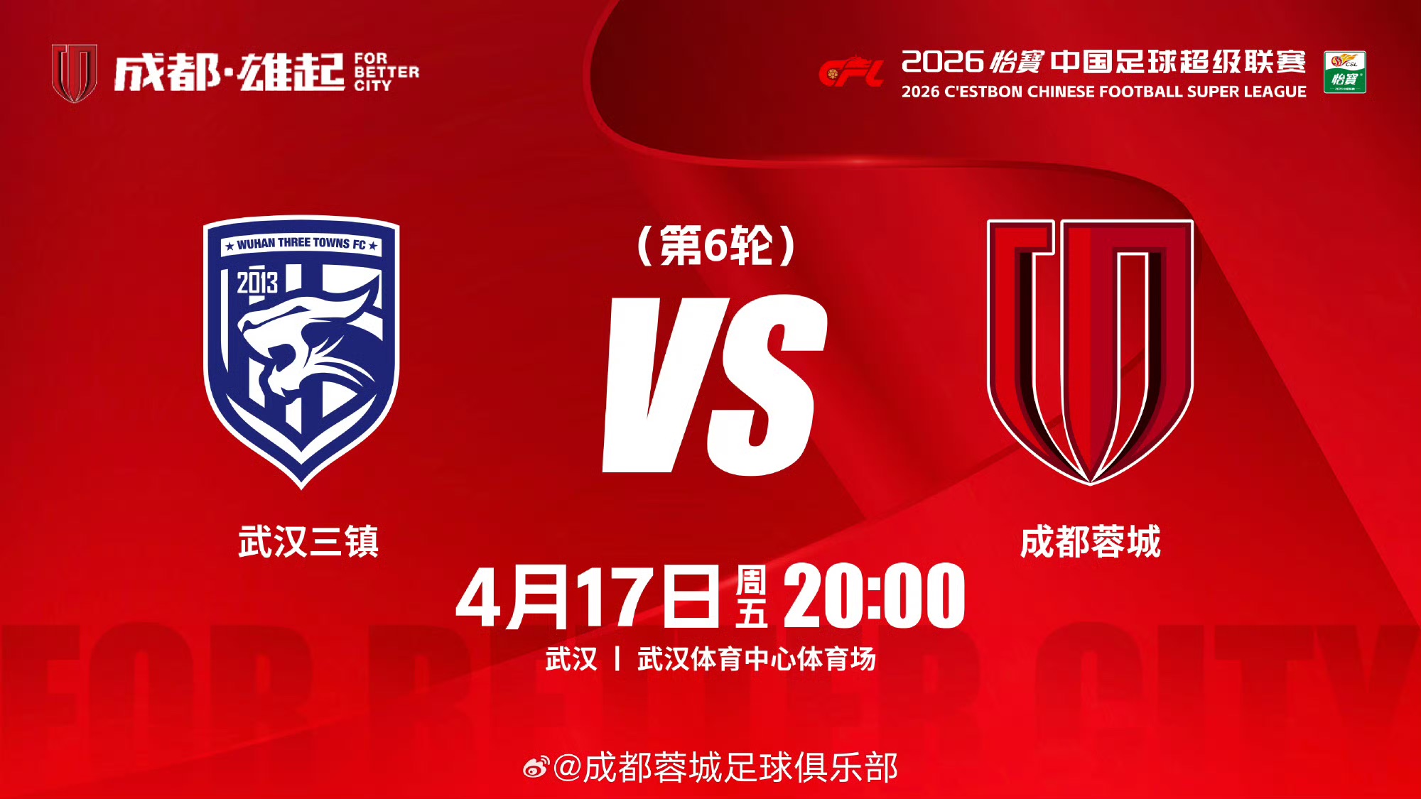 北京时间4月17日至18日,2026赛季中超联赛第6轮将上演三场看点十足的对决:青岛海牛与青岛西海岸的同城德比激情碰撞,山东泰山主场迎战卫冕冠军上海海港,而积分榜领头羊成都蓉城则客场挑战深陷降级区的武汉三镇。