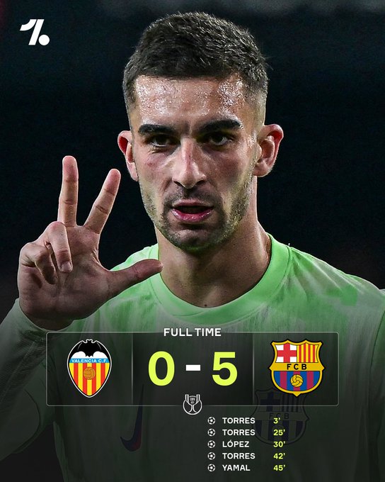 凭借费兰-托雷斯30分钟之内的帽子戏法,其实巴萨在半场就已经终结了本场比赛的更终悬念。而全场比分5-0,也让巴萨顺利晋级接下来的国王杯半决赛的对阵。