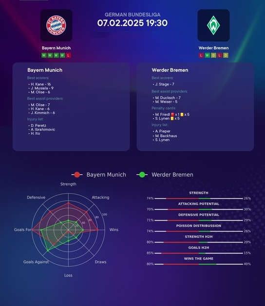 北京时间2月8日03:30,在德甲第21轮的较量中,拜仁将在主场安联球场迎战云达不莱梅。在本场之前,拜仁领先卫冕冠军勒沃库森6分的优势领跑积分榜,而不莱梅则以30分的成绩暂列第8名。