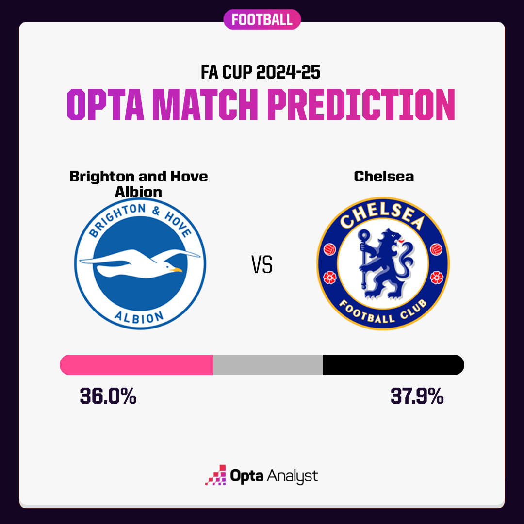 而针对本场比赛,Opta给出的预测却是一个均势--布莱顿胜,36%;切尔西胜,37.9%;平局,26.1%。