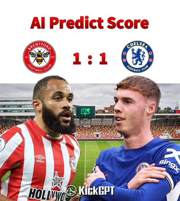 在布伦特福德vs切尔西的比赛中,KickGPT给出的预测结果是双方1-1打平。