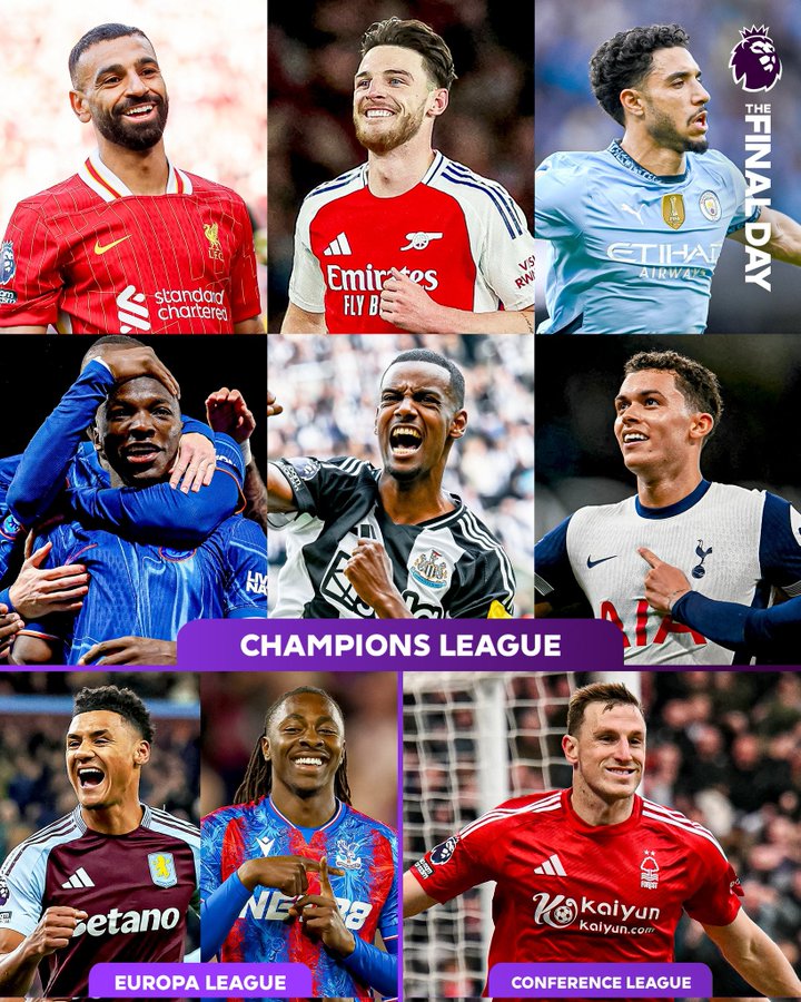 随着本赛季英超的结束,英超也获得了史无前例的9个欧战参赛名额--欧冠:利物浦,阿森纳、曼城、切尔西、纽卡斯尔、托特纳姆热刺;欧联:阿斯顿维拉,水晶宫;欧协联:诺丁汉森林。