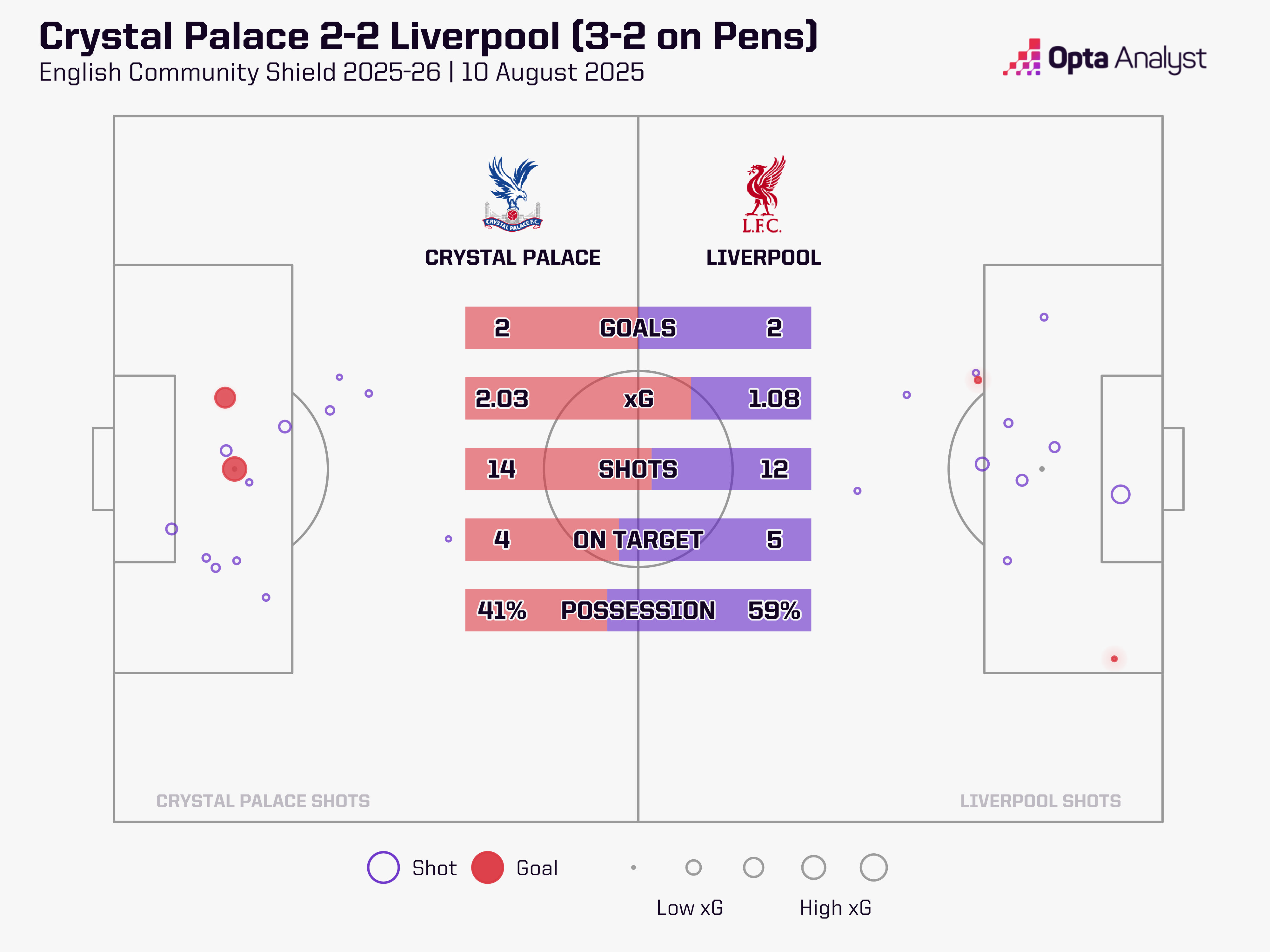 回看比赛过程其实不难发现,作为赛前更被看好的热门夺冠球队利物浦,其实在比赛中所体现的威胁性并没有水晶宫强--在预期进球值的统计中,利物浦甚至仅有水晶宫的一半,而且射门还少两次。虽然占据了更多的控球权,但的确并没有转化为实质性的威胁去终结比赛。