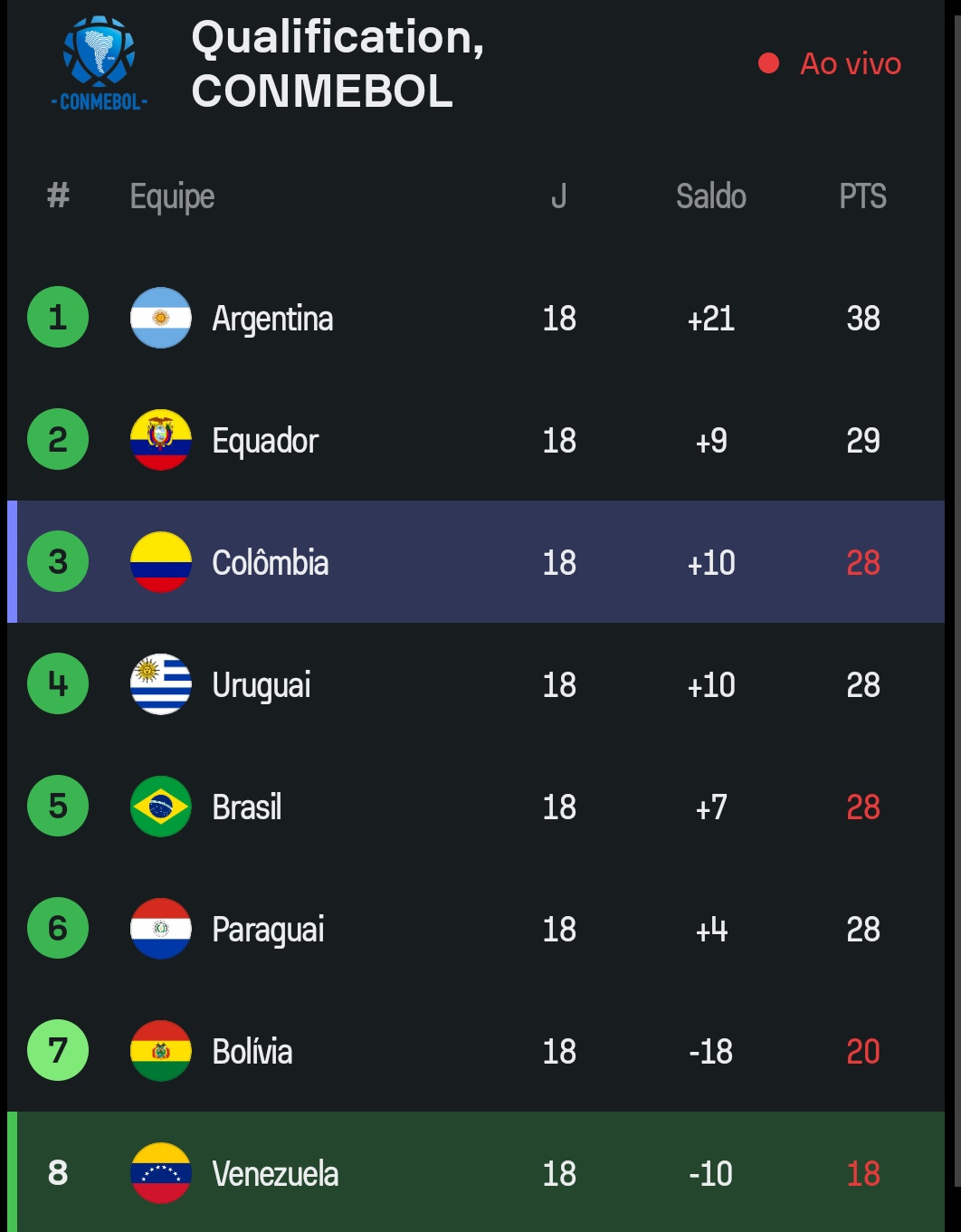 凭借更后一场击败巴西的比赛,玻利维亚成功逆转委内瑞拉从而拿到了一张洲际附加赛的机会。