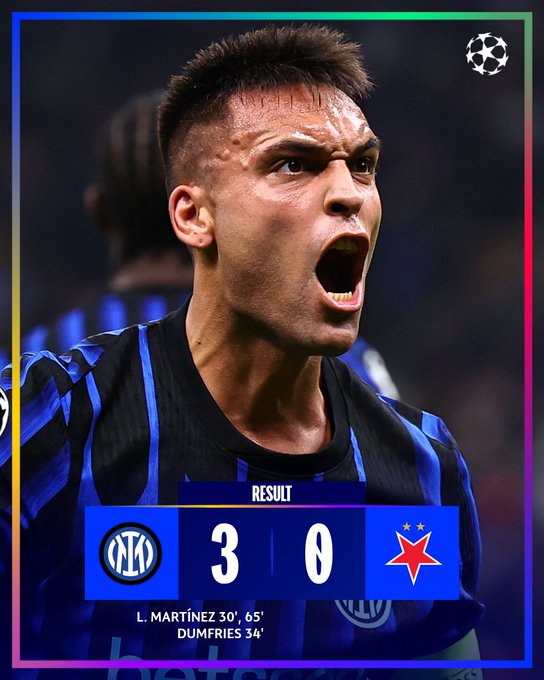 主场作战的国米,凭借劳塔罗的梅开二度和邓弗里斯的进球,主场3-0轻松取胜布拉格斯拉维亚,拿到了本赛季的两连胜。同时,两场比赛打进5球的国米,目前仍然是0失球。