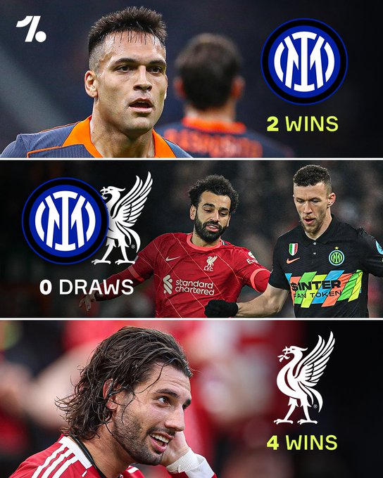 据统计,国米和利物浦之间共交手6次、国米2-4落后于利物浦。而双方之间更近的一次较量,则是在21/22赛季的1/8决赛,利物浦凭借第一回合的2-0取胜,更终以总比分2-1淘汰国米晋级;