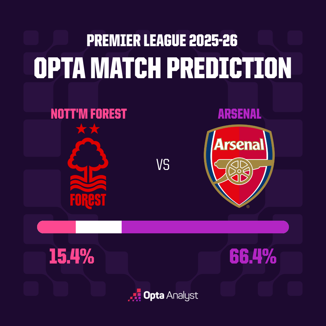 而在Opta看来,枪手却无疑还是本场更大概率的获胜方--森林胜,15.4%;枪手胜,66.4%;双方平局,18.2%。