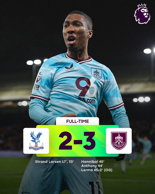 或许,上半场的进球耗尽了双方全部力气,到了下半场这种进球如麻的情形也未能再出现。而2-3的比分一直保持到了终场,伯恩利客场逆转水晶宫拿到了本场比赛的更终胜利!