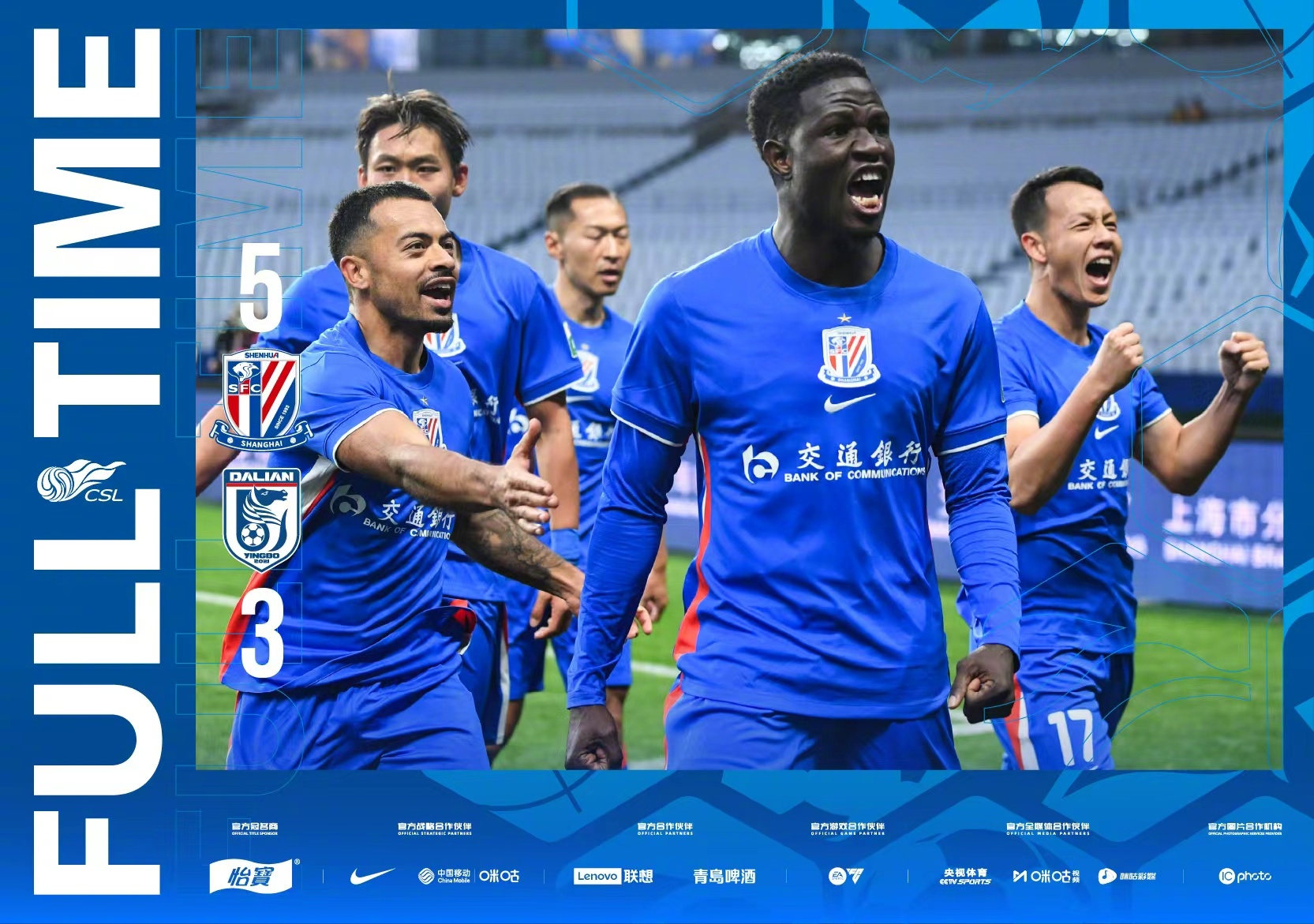 中超战报:进球大战、上海申花5-3大连英博;海港1-2河南