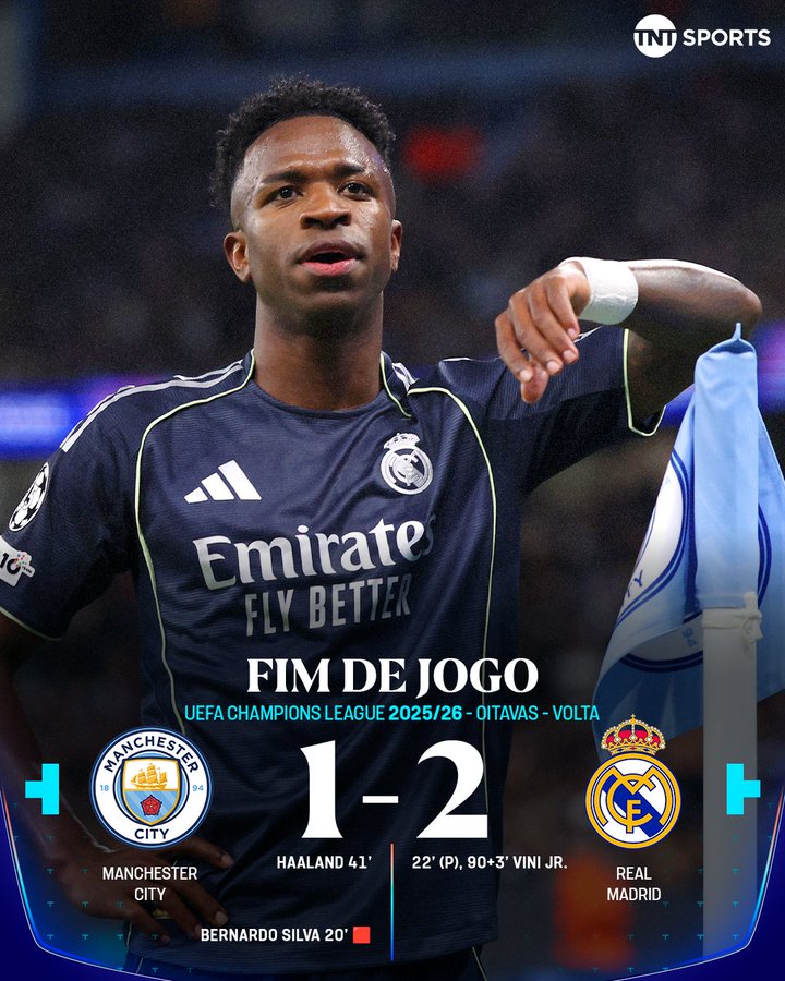 曼城1-2皇家马德里(皇马两回合总计5-1淘汰曼城晋级)
