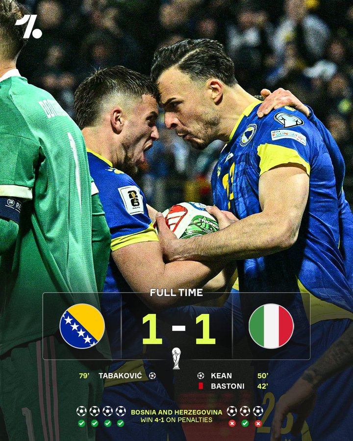 世欧预战况:波黑点球5-2淘汰意大利,蓝衣军团连续三届无缘!