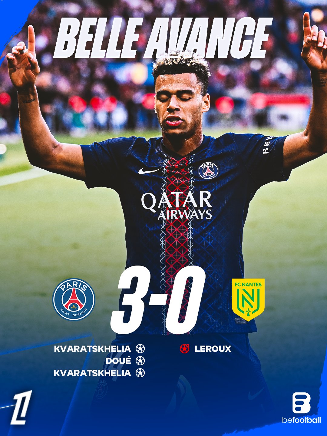 下半场第50分钟,接到登贝莱的传递后,k77高速推进的同时还在南特禁区完成了连续过人并更终破门得分,在他梅开二度的同时也将比分改写为了3-0。