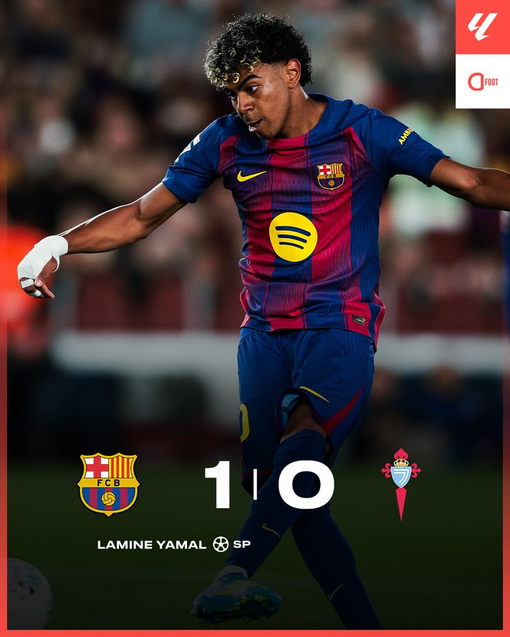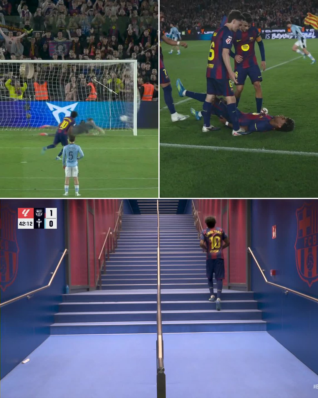 上半场第40分钟,亚马尔突破造点,之后他亲自主罚命中了这一点球,巴萨取得了1-0的领先。然而,很不走运的就是,打进点球之后的亚马尔就因伤病无法坚持比赛而只能被替换下场;